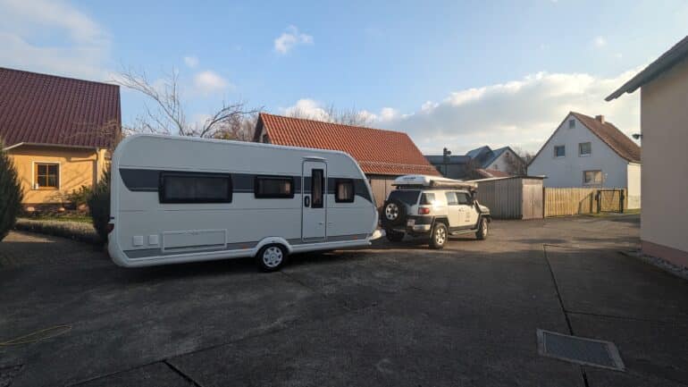 Testen Sie anschließend die komplette Beleuchtung – Blinker, Bremslicht, Rückfahrlicht und Standlicht. Bei Wohnwagen ist es wichtig, dass auch die Anhängerbeleuchtung einwandfrei funktioniert. Stellen Sie sicher, dass alle Stützfüße eingefahren und Keile verstaut sind. Nichts ist peinlicher, als mit ausgefahrenen Stützen loszufahren.