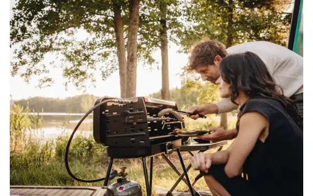 Mobiler Koffergrill mit drei Flammen für Vanlife