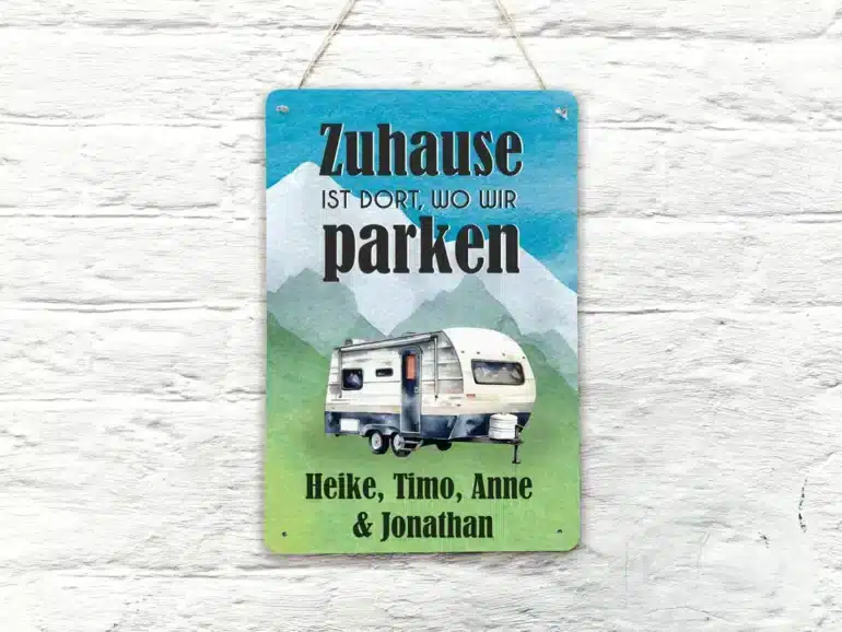 Im Vanlife geht es um Freiheit, Abenteuer und die kleinen Details, die den Camper zu einem echten Zuhause machen. Ein Blechschild passt gut in diese Welt: das Blechschild bunt für Camper personalisiert mit dem Motto „Zuhause ist dort, wo wir parken“. Dieses farbenfrohe Metall-Schild bringt Motivation in den Alltag von Campern und dient als praktisches Accessoire für den Innenraum von Campervans oder Motorhomes. Es misst etwa 20 cm x 30 cm und besteht aus Metall mit weißer Beschichtung, veredelt durch einen hochwertigen Druckprozess mit langlebigen Farben. Es gibt sechs Motiv-Varianten, und es kann mit gewünschten Namen individualisiert werden – eine Möglichkeit, den eigenen Van einzigartig zu gestalten.