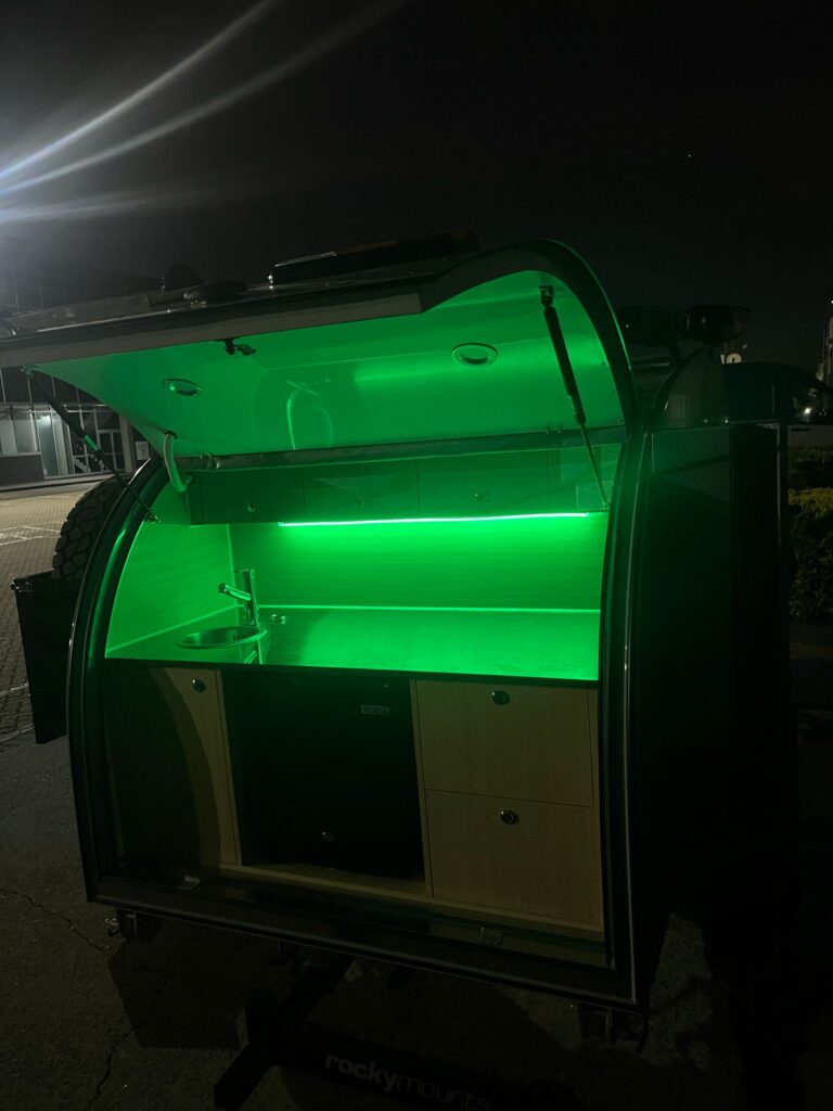 Auch wenn Breath Ultra auf den ersten Blick nach purem Understatement aussieht, verbergen sich doch einige Luxus-Details im Miniformat. So lässt sich beispielsweise ein ausfahrbares Sonnensegel seitlich am Trailer spannen, das vor Regen schützt und den Wohnraum nach draußen erweitert. Das Wohnzimmer verlagert sich bei gutem Wetter einfach unter den Himmel. Ebenfalls an Bord: Eine Heizung für kühle Nächte, damit der kleine Raum im Nu kuschelig warm wird (an frischen Herbstmorgen ein Segen!). Für Technik-Fans gibt es USB-Ladebuchsen und clever platzierte LED-Spots, die den Innenraum stimmungsvoll erhellen, ohne viel Energie zu fressen.