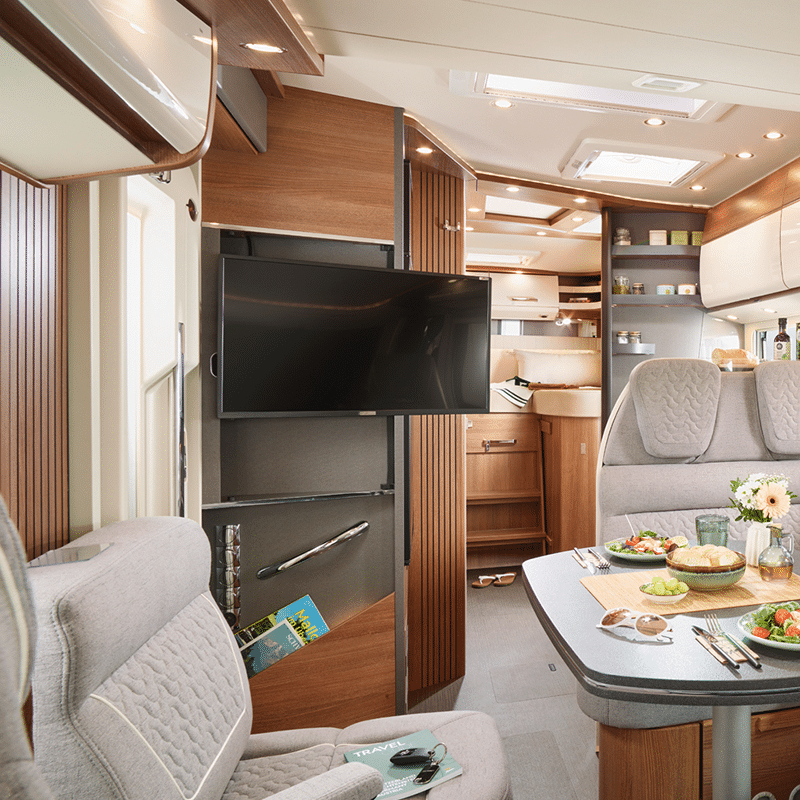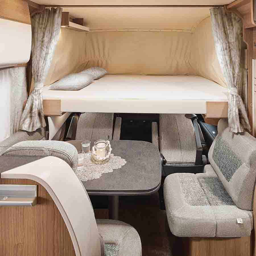 Praktische Details wie Leselampen, USB-Steckdosen am Bett und kleine Staufächer für die Nachtlektüre runden den Schlafbereich ab. So wird jede Nacht im C-Tourer zur erholsamen Pause – und morgens grüßt der Sonnenaufgang durchs Fenster.