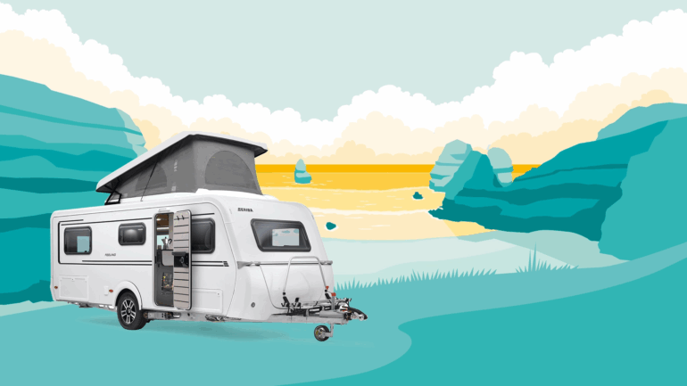 Im Dauertest überzeugte der ERIBA Feeling durchweg mit seinen gutmütigen Fahreigenschaften. Die extra lange Zugdeichsel sorgt für mehr Fahrstabilität und bietet ausreichend Platz für einen Deichselträger – etwa für E-Bikes. Die Anti-Schlinger-Kupplung mit Reibbelägen unterdrückt Schlinger- und Nickbewegungen, was besonders bei Seitenwind oder LKW-Überholmanövern Sicherheit gibt. Die automatische Bremsnachstellung verkürzt nicht nur die Bremswege, sondern sorgt auch für sanftes Bremsen ohne ruckartiges Auflaufen. Wer noch mehr Sicherheit wünscht, kann das optional erhältliche Anti-Schleuder-System ordern, das den Caravan bei Instabilität selbstständig durch sanftes Abbremsen in die Spur zurückzieht.