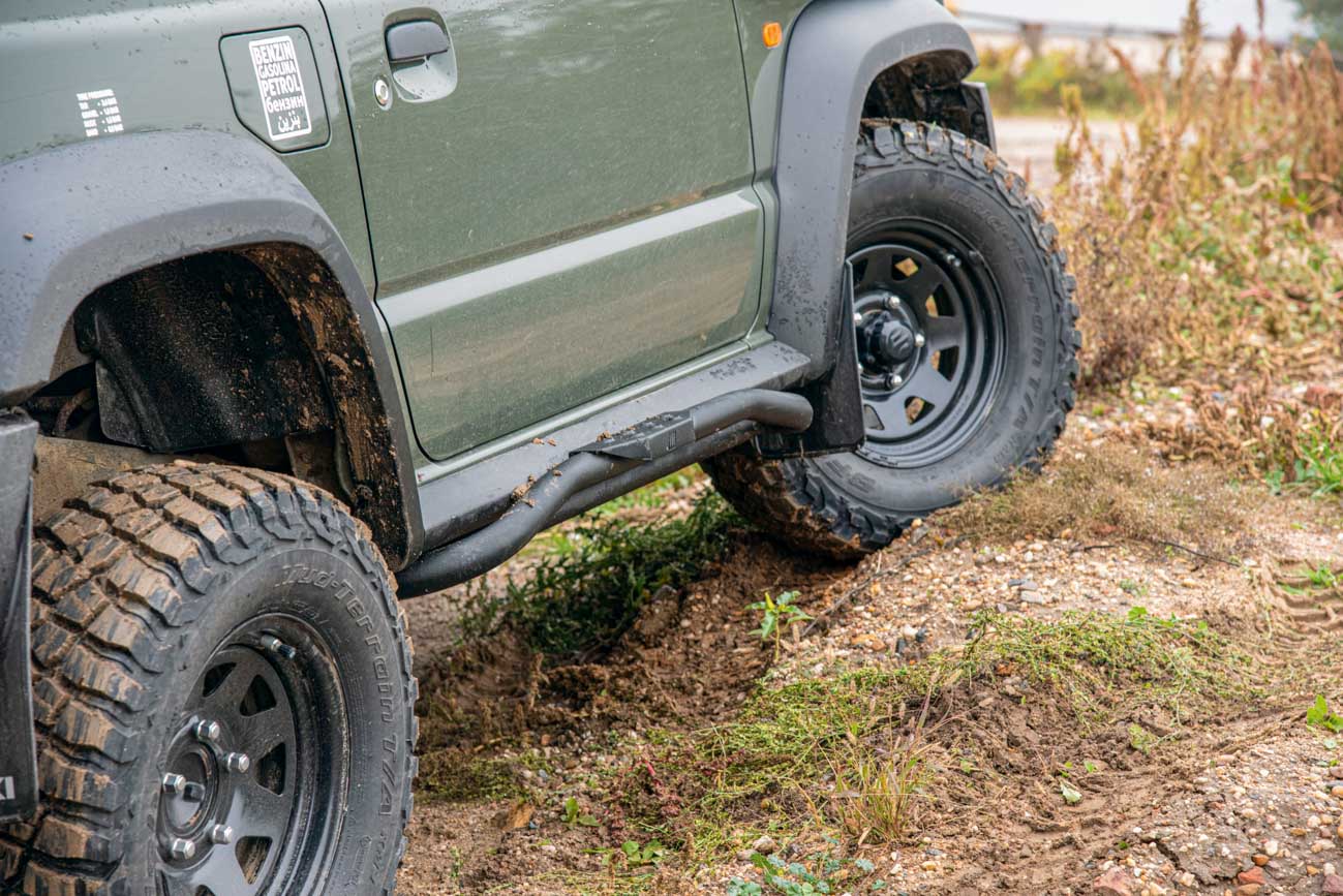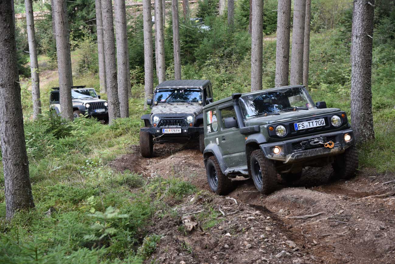 Für Reisen gibt es noch einen Thule-Canyon-Dachträger. Er und das dazugehörige Verlängerungsteil sind auf einem Grundträger von Rhino Rack verschraubt. Bei Ausflügen in Offroadparks oder zu Veranstaltungen bleibt der Dachträger jedoch unten. Die Umbauten hatten ihren guten Grund. Michael hat den Jimny nämlich tatsächlich nur zum Offroaden und für Offroad-Reisen gekauft. Daher sah der kleine Japaner schon bei Kilometerstand 400 zum ersten Mal Gelände.