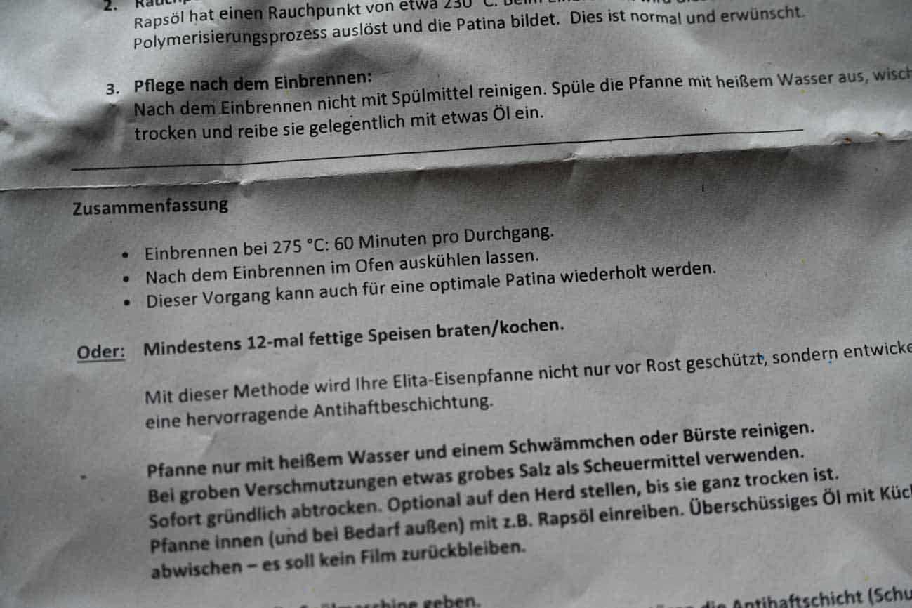 Das Einbrennen der Elita Eisenpfanne