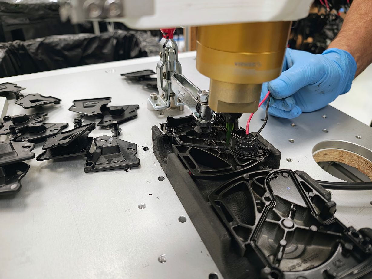 Bei der Endmontage der Scheinwerfer müssen mehrere Teile dauerhaft wasserdicht miteinander verbunden werden – etwa wenn die Linse auf das Gehäuse geklebt wird. Lazer Lamps verlässt sich dabei auf modernste Klebeverfahren mit Unterstützung von Robotern. So trägt ein Roboter absolut gleichmäßig einen Plasma-Primer auf, um die Haftflächen optimal vorzubereiten. Anschließend sorgt eine automatisierte Dosieranlage dafür, dass der Klebstoff millimetergenau in der richtigen Menge aufgetragen wird. „Eine wirklich präzise Klebung ist nur mit Robotern möglich“, heißt es im Werk.
