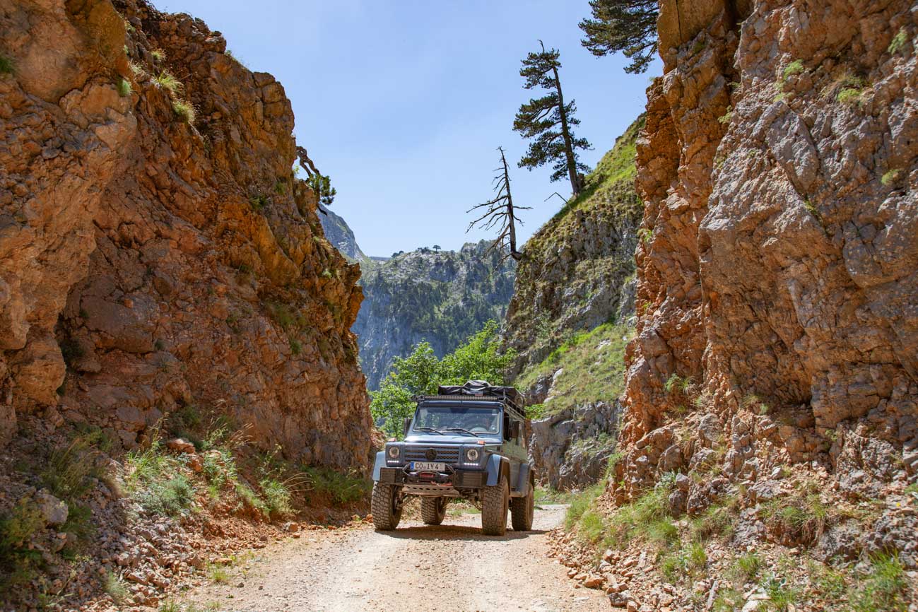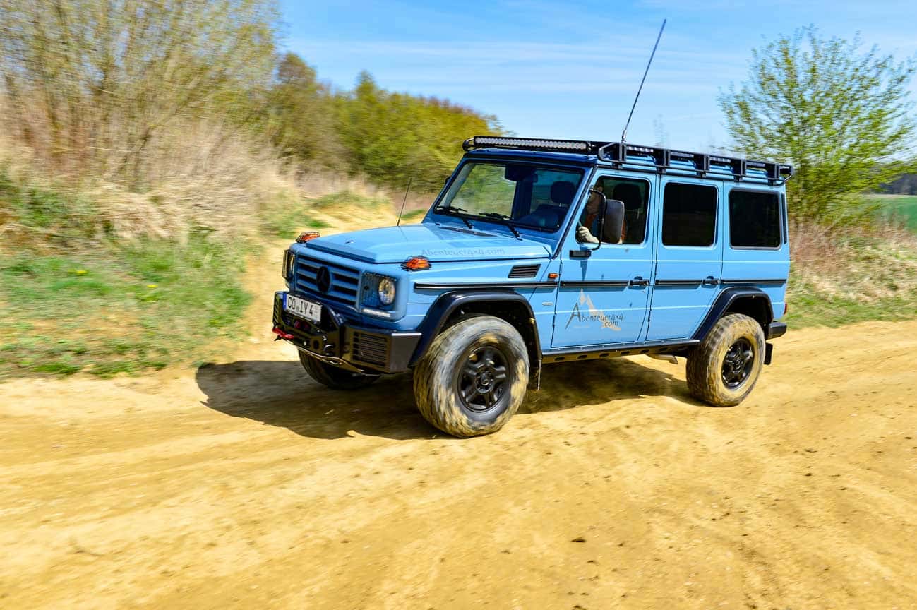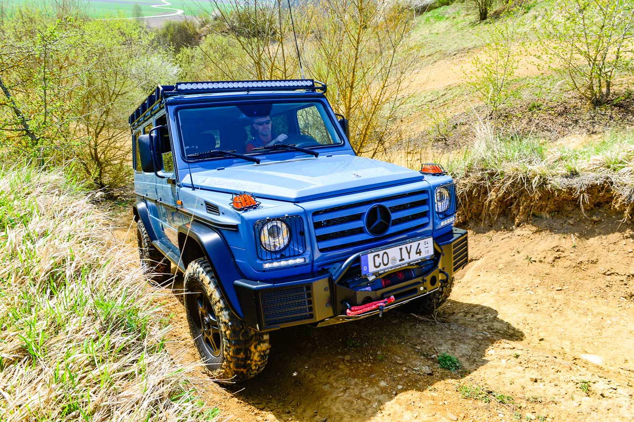Doch wer will in so einem Auto schon Straßenverkehr? Also ab ins Gelände. Und das geht mit dem Portalachsen-G einfach genial. Wo wir mit anderen Offroadern um dicke Brocken drumherum oder an tiefen Rinnen eine flache Stelle suchen müssen, fahren wir mit diesem Geländegänger einfach drüber oder durch. Kurz: Es macht einfach höllisch Spaß, den Wagen da zu bewegen, wo er hingehört.