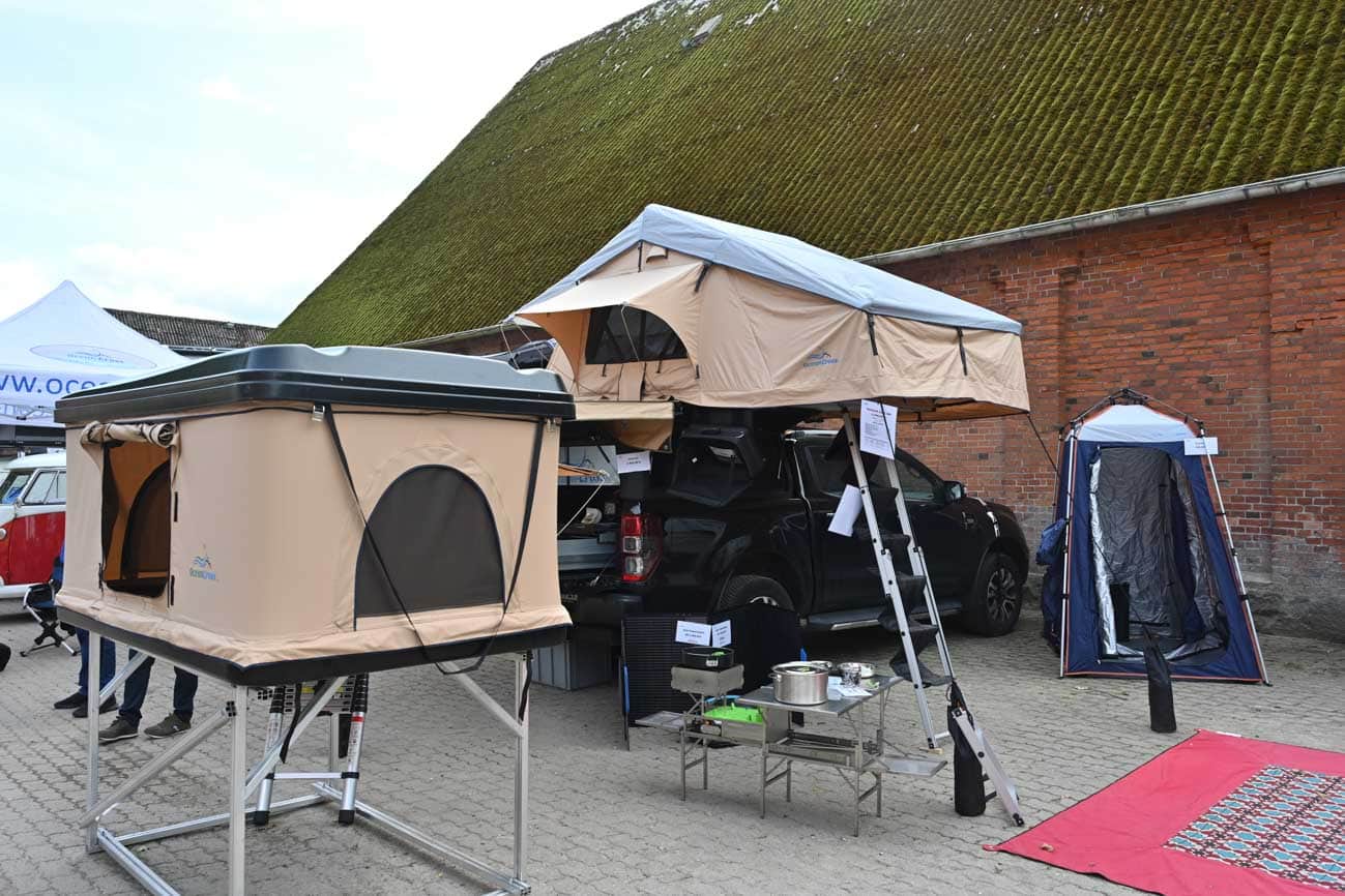 Seit fast 40 Jahren produziert und vertreibt Ocean Cross aus Bissendorf bei Osnabrück Dachzelte und verschiedene andere Produkte für Camper. Was schnell auffällt, wenn man im Sortiment stöbert: Die Preise sind mehr als moderat. Das schlägt sich jedoch nicht, wie bei machen anderen Anbietern, in mangelnder Qualität nieder. Auf dem Messestand auf der Adventure Northside verrät uns Timm Moshage, Werksleiter bei Ocean Cross, dass man schlicht die Kalkulation für Zwischenhändler weggelassen hat. Heißt, man bekommt die Produkte nur bei Ocean Cross selbst, dafür sind sie günstig.