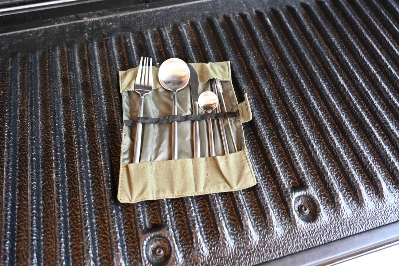 Wer nur ein kleines Besteck-Set für unterwegs sucht, wird mit dem sechsteiligen Besteckset für knappe 19 Euro fündig. Das Besteck ist stylisch, die Tasche zum Rolle hochwertig und man kann es einfach fast immer dabeihaben.