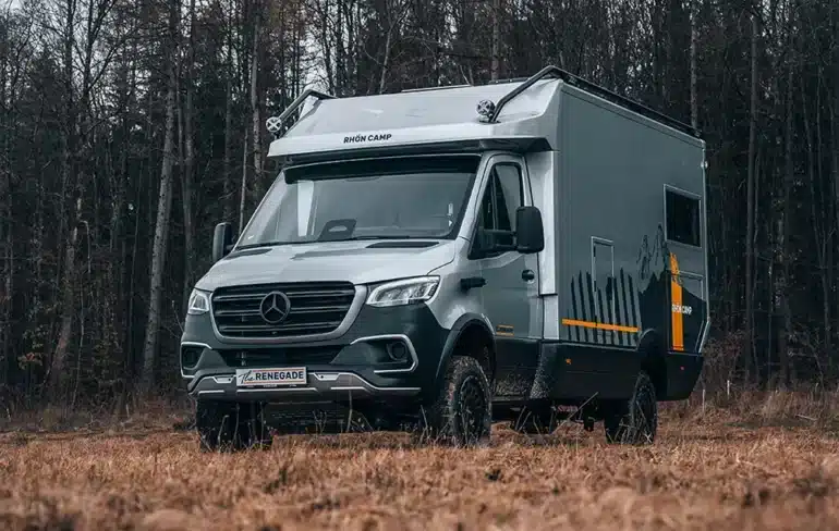 Rhön Camp positioniert den The Renegade als Speerspitze der eigenen Sprinter-Baureihe – und dieser Anspruch ist im Fahrzeug deutlich spürbar. Basis ist der Mercedes Sprinter, ausgebaut in teilintegrierter Automotive-Bauweise. Der Fokus liegt auf einem großzügigen Grundriss mit offenen Blickachsen, gepaart mit modernem Design und einer für Manufakturausbauten typischen Detailversessenheit. Im Ergebnis steht ein Camper, der sich klar an Reisende richtet, die Vanlife nicht als Minimalprogramm, sondern als komfortables, ganzjähriges Unterwegs-Sein verstehen.