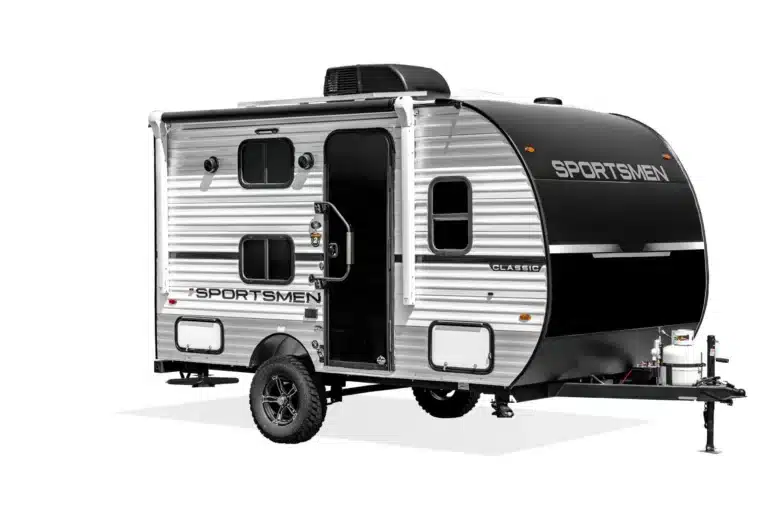 Der Sportsmen Classic Travel Trailer kombiniert geringes Gewicht, kompakte Abmessungen und einige sehr durchdachte Features, die sich speziell für Vanlife und längere Roadtrips eignen. Das begehbare Dach mit langlebiger Tufflex-PVC-Haut, die solide Bodenplatte, die alltagstaugliche Innenraumaufteilung mit umlaufbarem Queensize-Bett in bestimmten Grundrissen und eine großzügige Dusche machen ihn zu einem ernstzunehmenden Begleiter für alle, die mit Zugfahrzeug statt ausgebautem Van unterwegs sein wollen. Das Off-Road-Paket mit mehr Bodenfreiheit, Mud-Terrain-Bereifung und beheiztem Tank erweitert den Einsatzbereich hin zu abgelegenen Stellplätzen und kälteren Regionen.