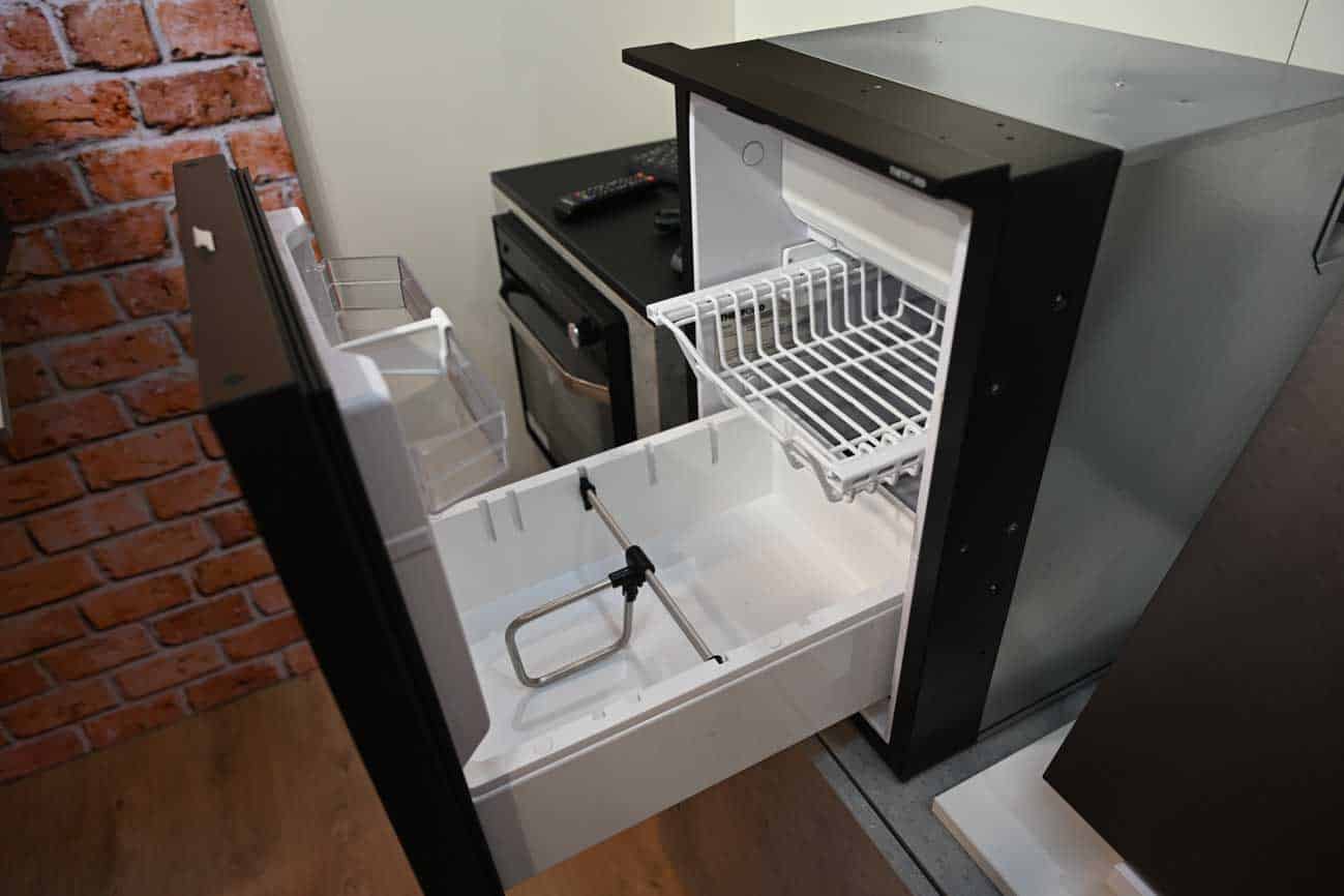 Ebenfalls ganz neu im Thetford-Sortiment sind zwei kleine Kühlschränke, die vor allem für den Einbau in Campervans gedacht sind. Eine gute Idee, denn in diesen Fahrzeuge ist Platz Mangelware. Die neuen Modelle mit ihren geringen Abmessungen werden in der Variante mit klassischer Tür oder mit Schubladenauszug zu haben sein. Bei den Fronten soll man zwischen schwarz und gebürstetem Metall wählen können. Aktuell sind noch keine Preise und keine näheren technischen Daten verfügbar, aber wir bleiben hier am Ball.