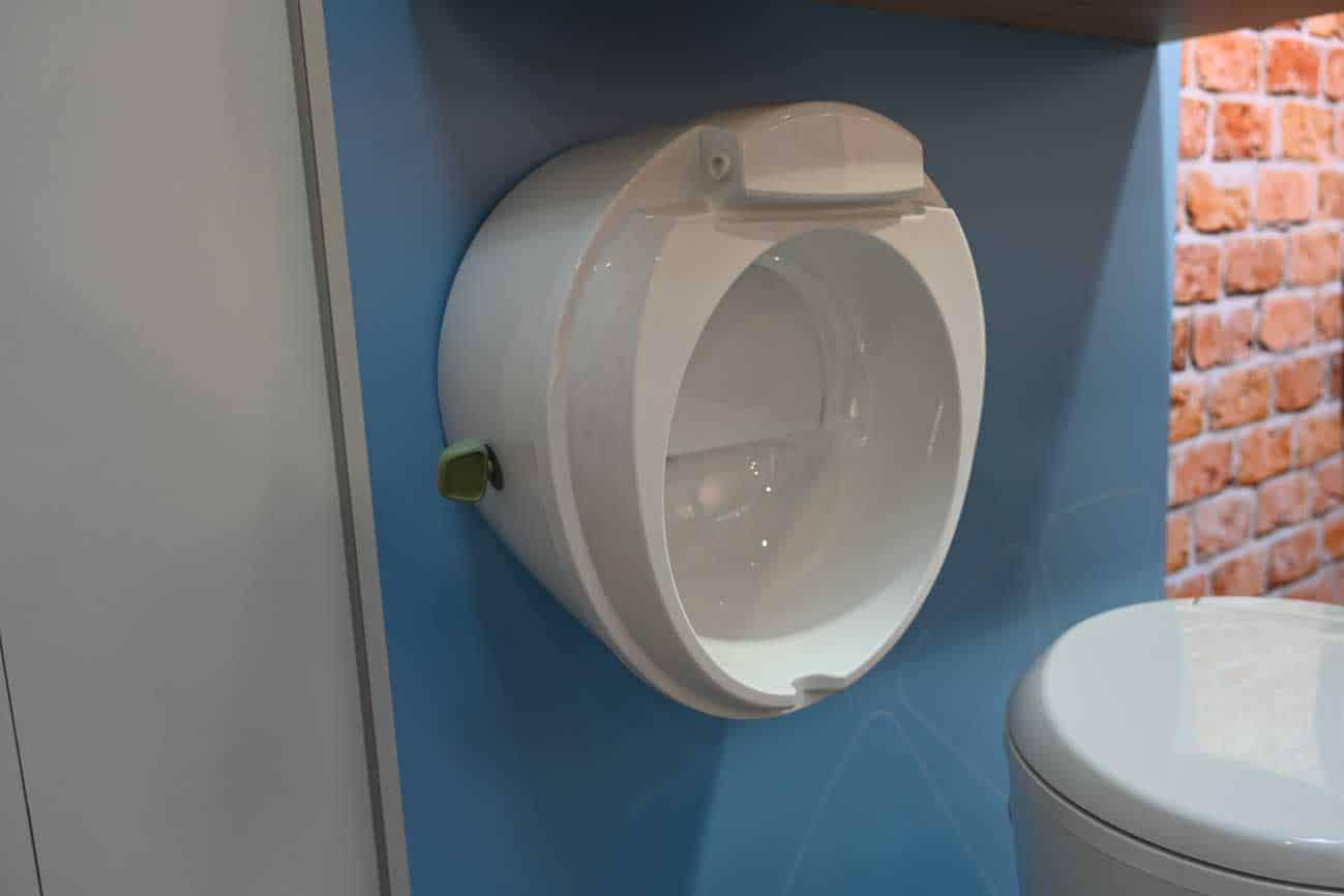 Die beiden neuen Trenntoiletten-Modelle funktionieren nach dem bewährten Prinzip von Trenntoiletten. Feststoffe wandern in einen Behälter, Flüssiges in einen Tank. Und sie funktionieren ohne Wasser und ohne Strom. Die Behälter können, genau wie bei den Kassettentoiletten, über eine Serviceklappe entnommen und geleert werden. Im hinteren Bereich der Schüssel befindet sich eine Klappe, die verschlossen werden kann, wenn man nur das kleine Geschäft erledigen muss. Das macht vor allem im Sitzen Sinn, denn sie ist so geformt und angebracht, dass der Urin nach vorne abläuft und nicht in den Feststoffbehälter.
