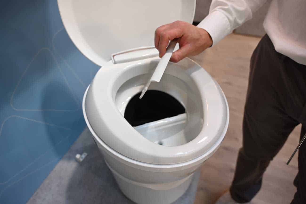 Die beiden neuen Trenntoiletten-Modelle funktionieren nach dem bewährten Prinzip von Trenntoiletten. Feststoffe wandern in einen Behälter, Flüssiges in einen Tank. Und sie funktionieren ohne Wasser und ohne Strom. Die Behälter können, genau wie bei den Kassettentoiletten, über eine Serviceklappe entnommen und geleert werden. Im hinteren Bereich der Schüssel befindet sich eine Klappe, die verschlossen werden kann, wenn man nur das kleine Geschäft erledigen muss. Das macht vor allem im Sitzen Sinn, denn sie ist so geformt und angebracht, dass der Urin nach vorne abläuft und nicht in den Feststoffbehälter.
