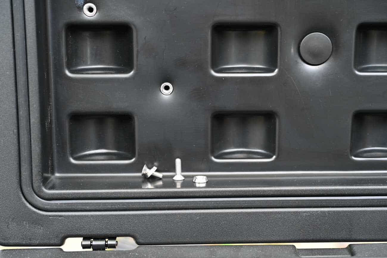 Optional kann man für jede der Boxen einen Organizer ordern, der im Deckel der Box befestigt werden kann. Bei den aktuellen Modellen wird er an bereits im Deckel angebrachte Einziehmuttern verschraubt, bei älteren Modellen kann er per mitgeliefertem Selbstklebe-Klett befestigt werden – oder man zieht selbst Muttern in den Deckel ein.