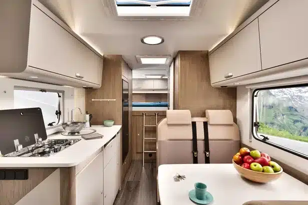 Eines der spannendsten Merkmale des Wohnmobil A464 PRO ist der durchgehend ebene Fahrzeugboden. Im Alltag auf Reisen klingt das unspektakulär, hat aber große Auswirkungen: Beim Be- und Entladen gibt es keine Stufenfallen im Innenraum, keine Übergänge, an denen Kisten hängenbleiben, und auch Kinder oder ältere Mitreisende bewegen sich entspannter durchs Fahrzeug. Wer im Vanlife häufig zwischen Strandgepäck, Wochenmarkt-Einkauf und Campingausrüstung jongliert, merkt schnell, wie viel Stress solche Details nehmen können.